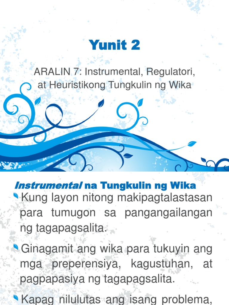 Aralin 7 Instrumental Regulatori At Heuristikong Tungkulin Ng Wika