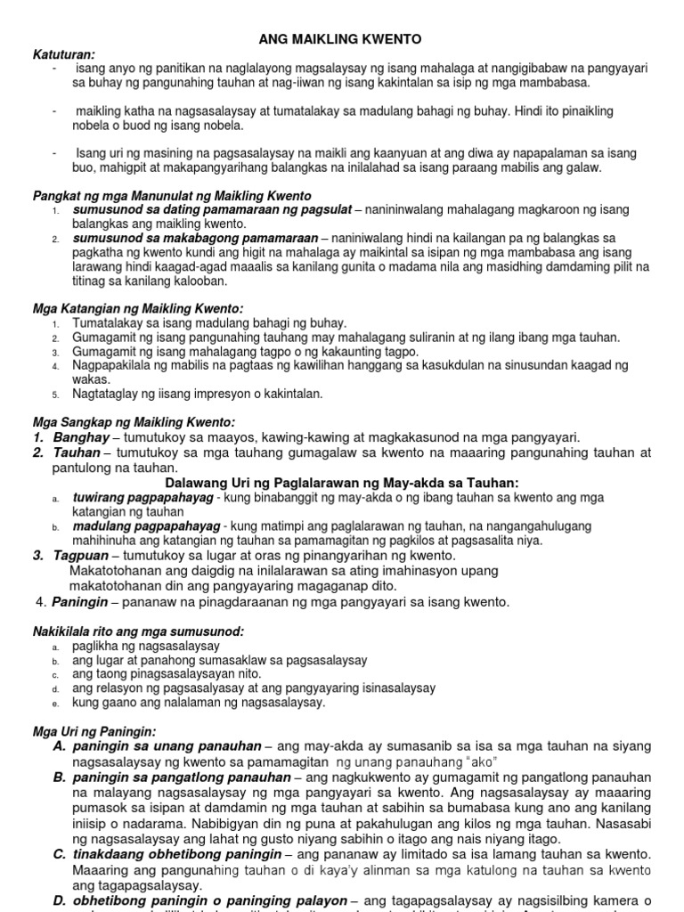 11022014 9 Maikling Kwento na Yaman ng Panitikang Filipino. January 27 2021. Ang maikling kwento ay karaniwang mayroong limang bahagi.
