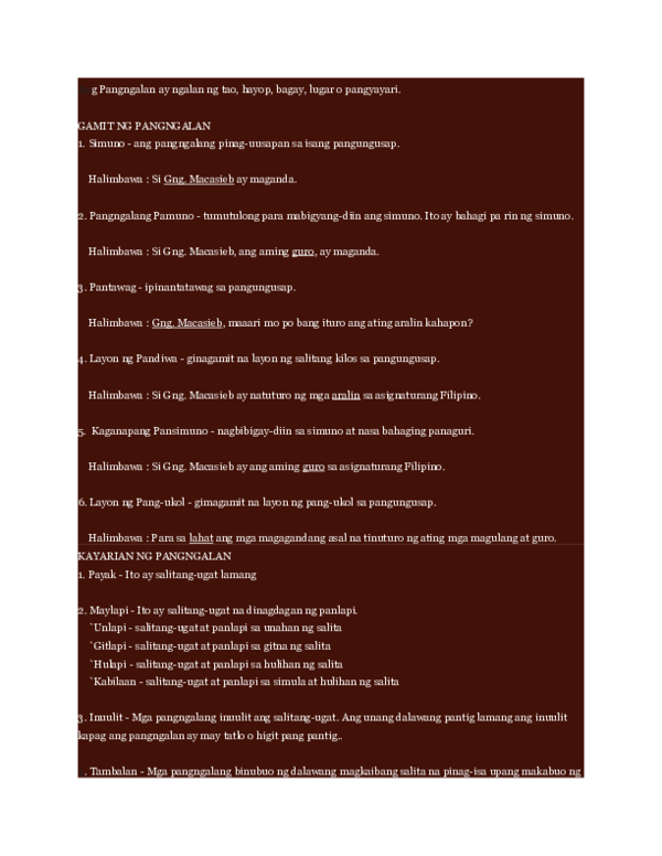 Mga pang-ukol na ginagamit para sa mga pangngalang pambalana na tumutukoy sa lahat ng uri ng pangngalan at pangngalang pantangi na tumutukoy sa lugar bagay o pangyayari. Di-gasino - tulad ng ginagamit sa paghahambing ng uri o katangian ng mga tao. 06012017 Halimbawa ng Paghahambing.