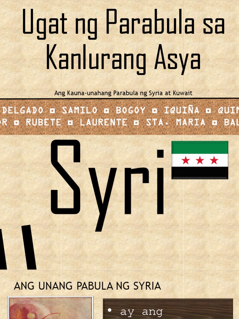 18062021 PARABULA NG KANLURANG ASYA PARABULA PABULA Di tulad ng pabula ang parabula ay gumagamit ng tao bilang mga tauhan. The Book of One Thousand and One Nights Persia and. Ang katawagang Kanlurang Asya ay kadalasang ginagamit sa mga kasulatan tungkol sa arkeolohiya ang huling bahagi ng prehistory ng rehiyon.