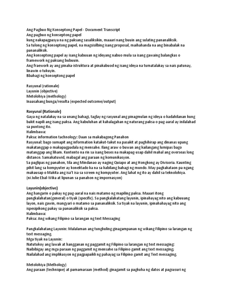 Mas nagkaka-intindihan ang bawat mamamayan dahil madali at Malaya nilang nipapahatid ang kanilang saloobin at kaisipan. Ang ilan sa mga makabagong tekn. Villena konseptong papel sa pananaliksik sa filipino 2 paksa.