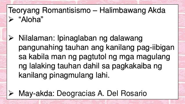 Mga halimbawa ng teoryang realismo ng pampanitikan. 03112020 Ano Ang Mga Halimbawa Ng Teoryang Pampanitikan. Ipinaglalaban ng teoryang realismo ang katotohanan kaysa kagandahan HALIMBAWA NG MGA AKDA 1. Teoryang Imahismo Ang layunin ng panitikan ay gumamit ng mga imahen na higit na maghahayag sa mga damdamin kaisipan ideya saloobin at iba pang nais na ibahagi ng may-adka na higit na madaling maunawaan kaysa gumamit lamang ng karaniwang salita.