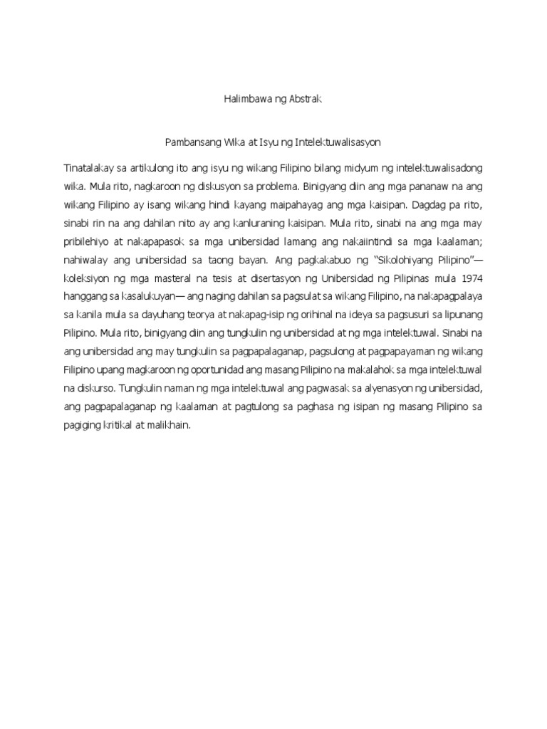 Abstrak filipino thesis abstract tagalog. Naglalaman din ito ng pinakabuod ng boung akdang akademiko o ulat. ABSTRAK Ang Abstrak ay isang uri ng lagom na karaniwang ginagamit sa pagsulat ng mga akademikong papel tulad ng tesis papel na siyentipiko at teknikal lektyur at mga report.